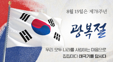 오는 8월 15일은 제78주년 광복절입니다. 우리 모두 나라사랑하는 마음으로 태극기를 답시다. 각 가정에서의 게양시간은 07:00부터 18:00까지입니다.