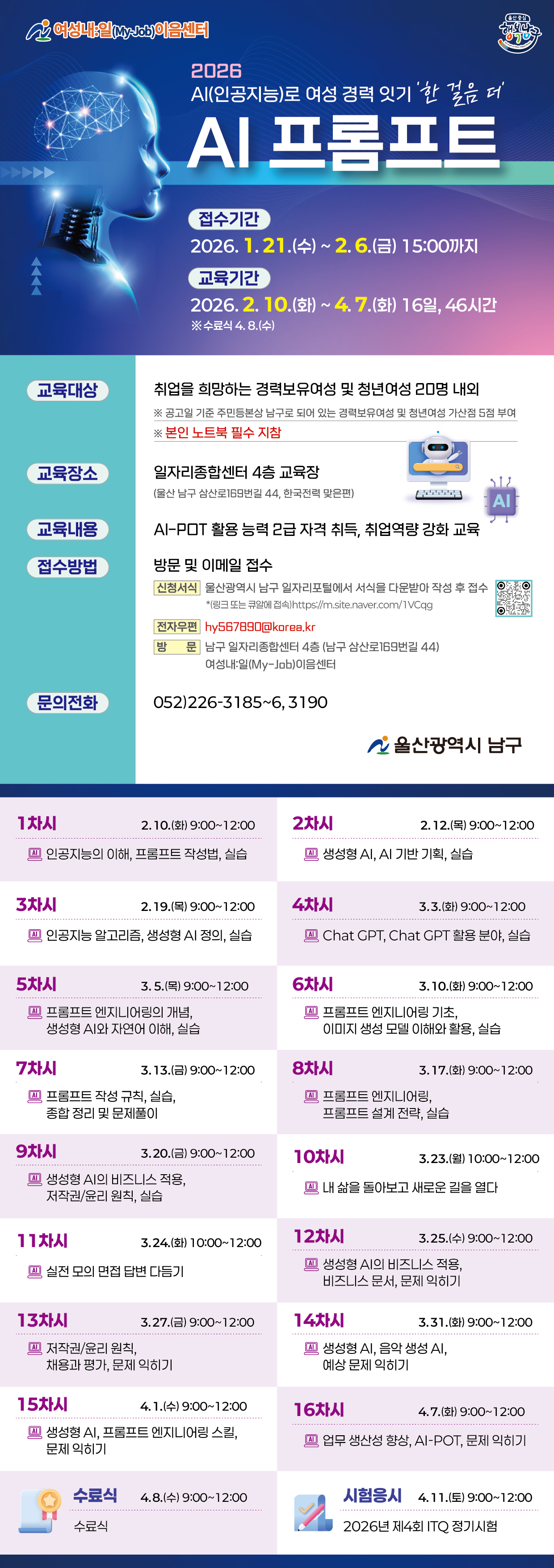 - 2026 AI(인공지능)로 여성 경력 잇기‘ 한 걸음 더’ AI 프롬프트 과정 모집 공고2026-12-31