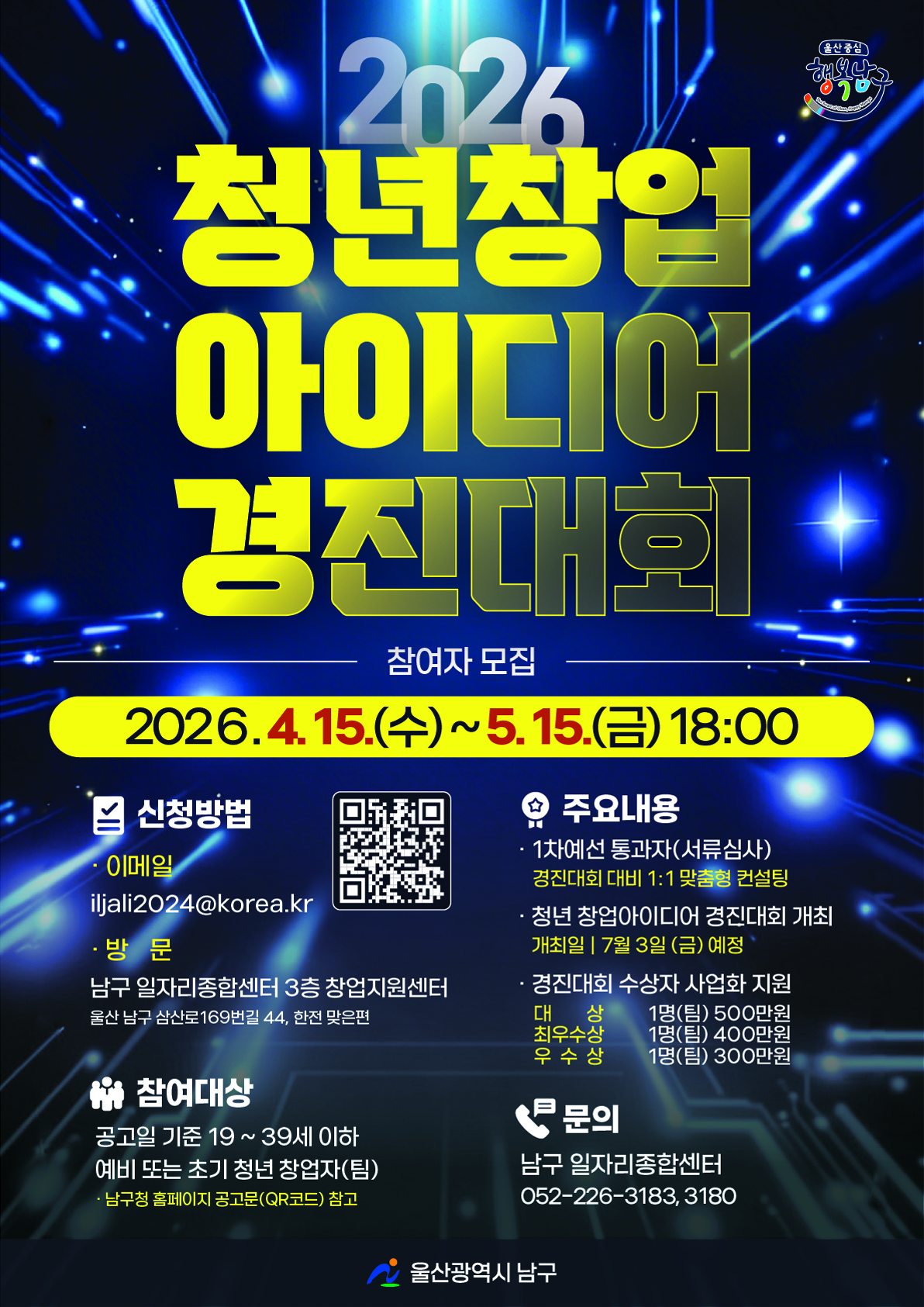 - 방 문: 남구 일자리종합센터 3층 창업지원센터