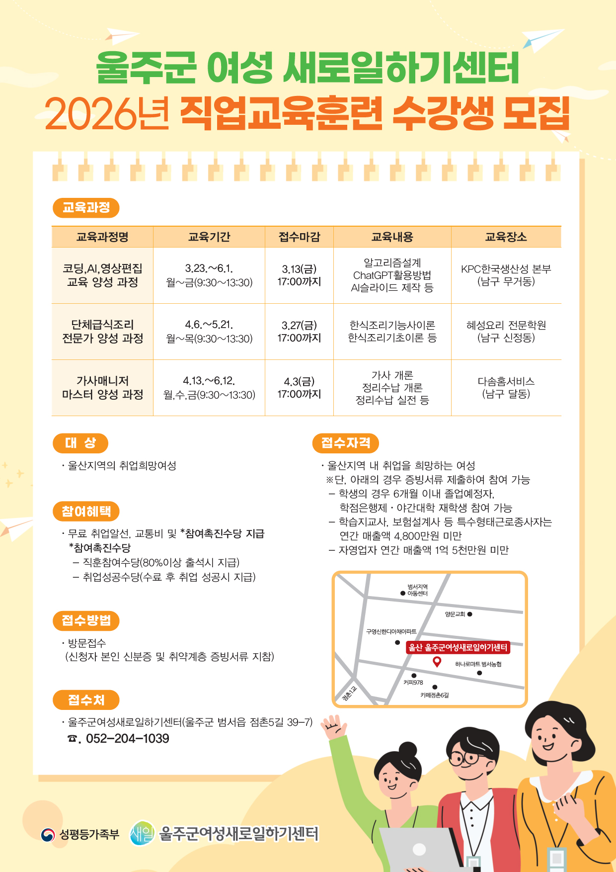울주군 여성 새로일하기센터 2026년 직업교육훈련 수강생 모집