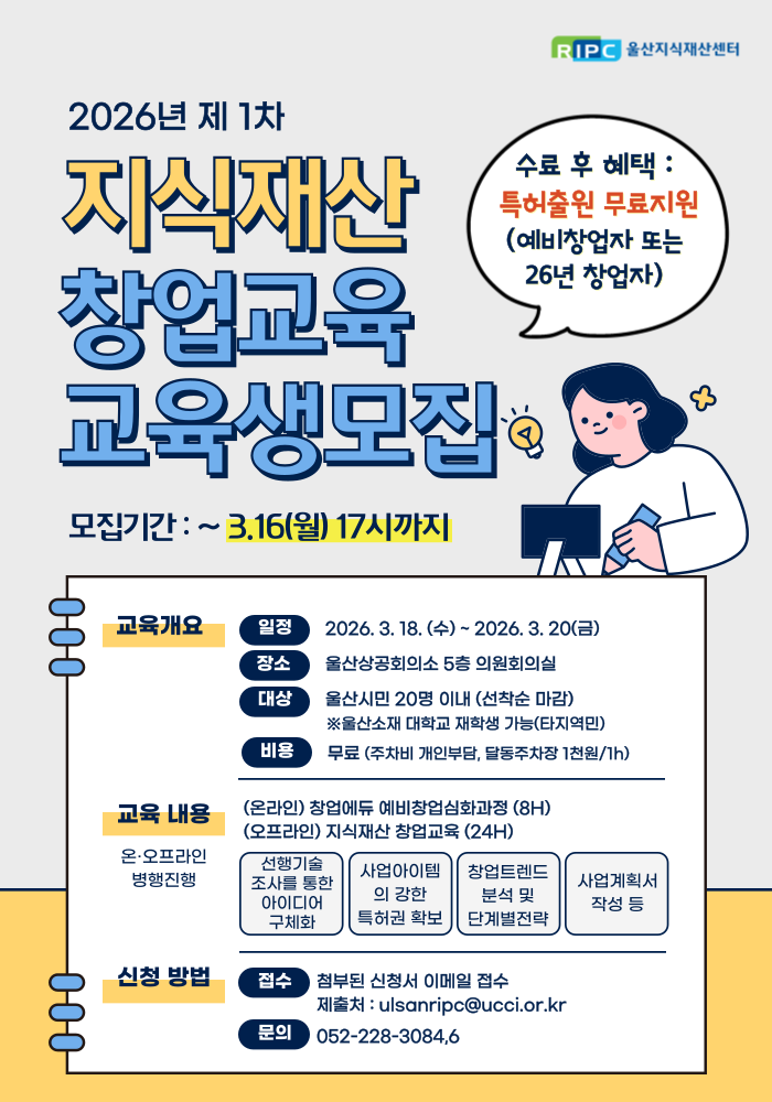 2026년 제1차 지식재산 창업교육 교육생모집 안내