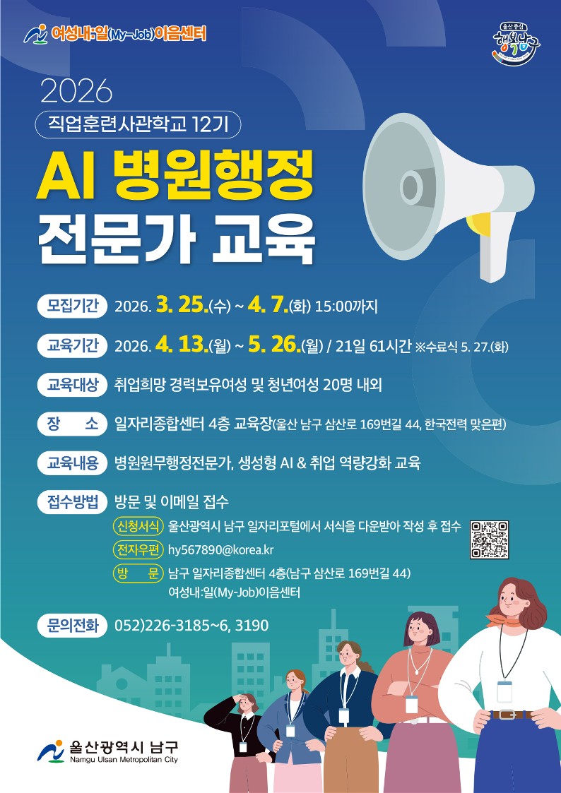 - 여성내일이음센터 2026 직업훈련사관학교 12기 AI 병원행정 전문가 교육생 모집2028-12-30