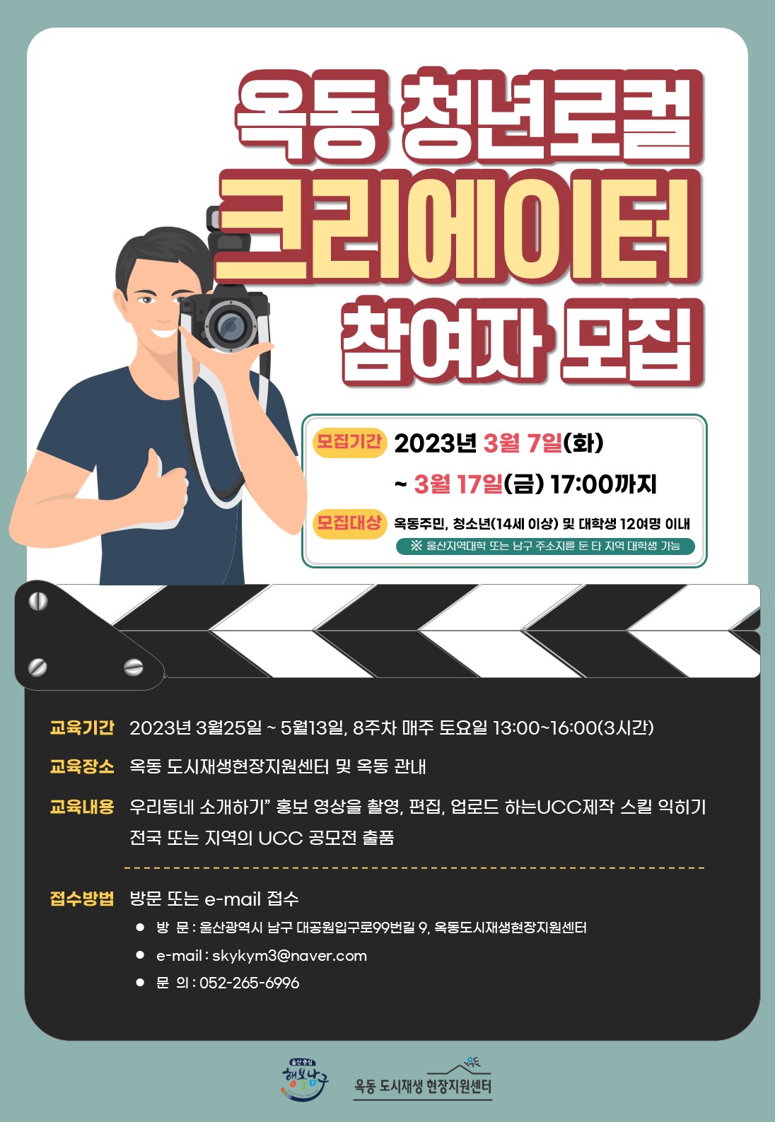 - 방문 : 울산광역시 남구 대공원입구로99번길 9, 옥동도시재생현장지원센터