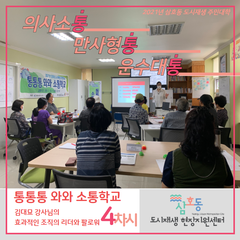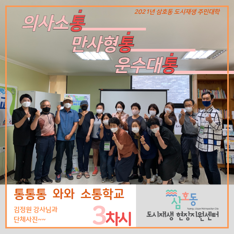 현재 2021년 삼호동 도시재생 주민대학인 "통통통 와와 소통학교"가 진행 중입니다.