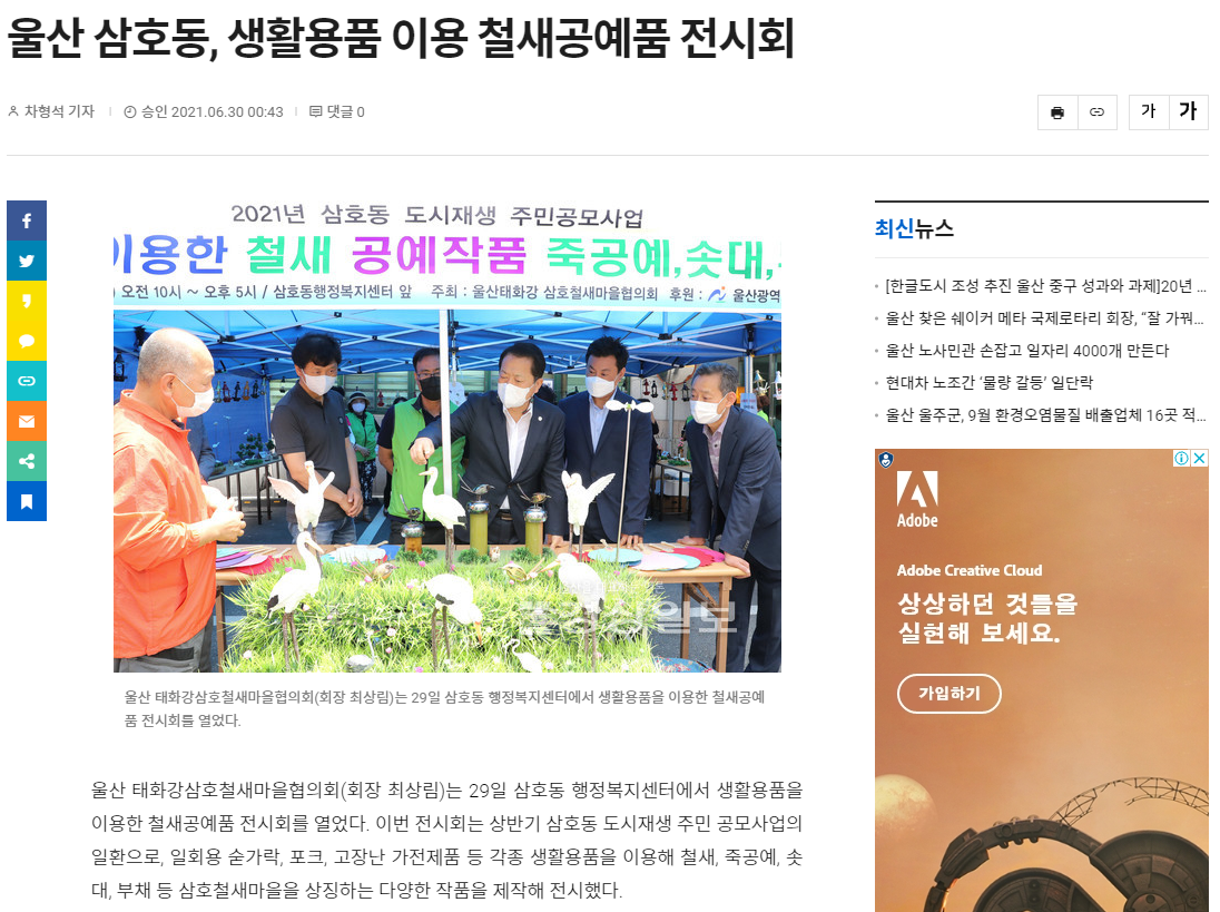 2021년 상반기 삼호동 도시재생주민공모사업을 선정된 "울산태화강삼호철새마을협의회"가 29일 생활용품 철새 공예전을 진행한다.