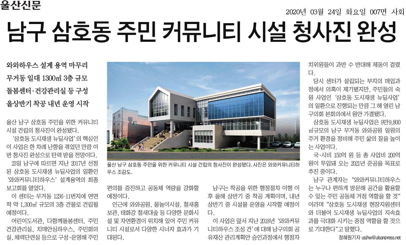 [삼호동 도새재생 뉴딜사업] 보도자료 - 남구 삼호동 주민 커뮤니티 시설 청사진 완성